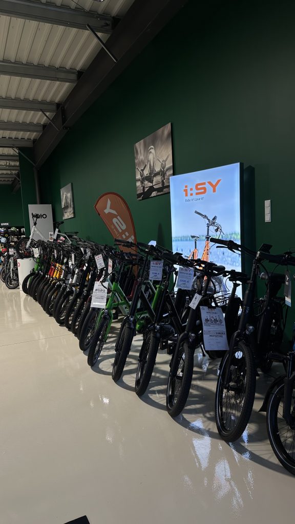 Einfach gut das Geschäft.Höflich, hilfsbereit und man kann alles Fragen und Probefahren.Die Auswahl an Fahrrädern und Zubehör ist großartig.Ich hätte heute am liebsten viele Fahrräder mitgenommen.